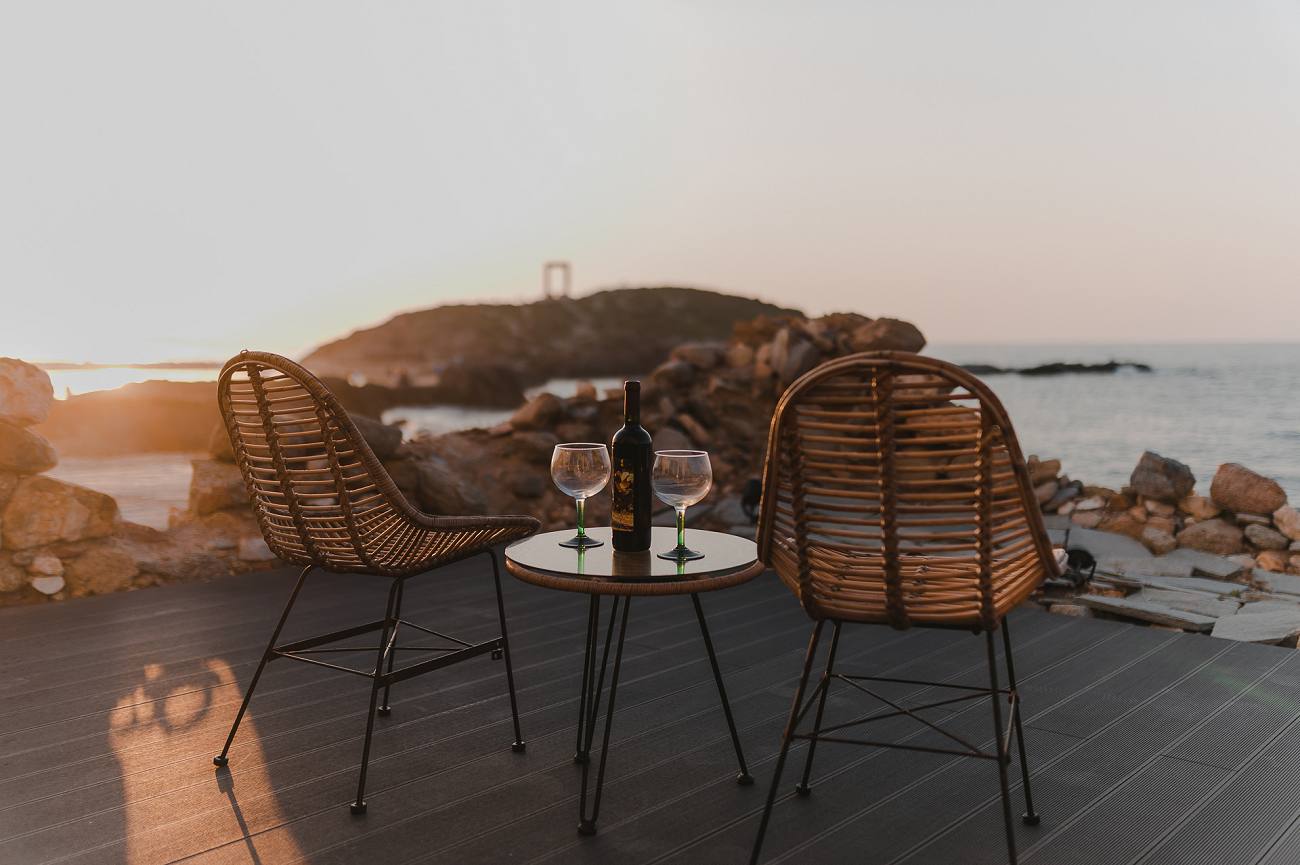 Free Wi-Fi, double bed, balcony / veranda, patio, sea view, sunset view, Portara (Temple of Apollon) view, air-conditioning, kitchenette, refrigerator, espresso cofee machine, kettle, flat-screen TV, private entrance, safe box, toiletries, outdoor jacuzzi